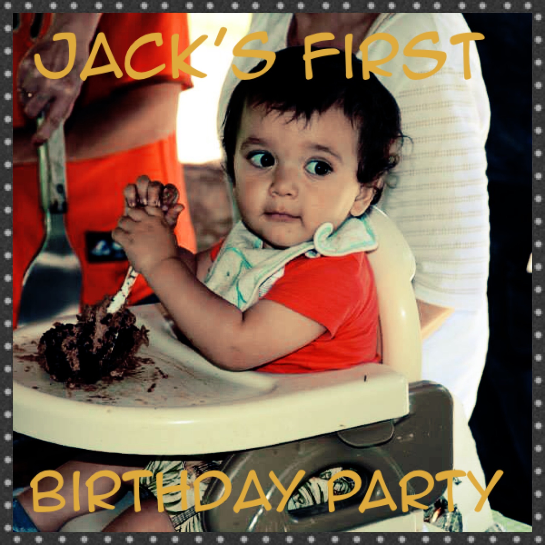 We did a cake smash too. My mom and I were going to make Jack a small cake to smash and then cupcake for everyone…. but we ran out of time and got a Costco cake. We cut him off a big piece to destroy, then served up the rest.