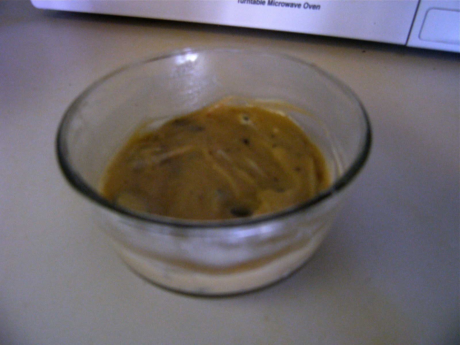 In a small microwavable bowl or ramekin, mix together all the ingredients until smooth.