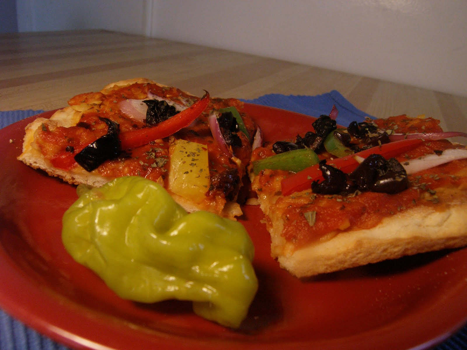 Top with the olives, then sprinkle on a pinch or two of salt and pepper. If you like a kick, add some red pepper flakes too.