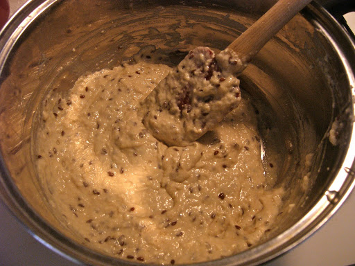 In a separate bowl, cream together the butter, sugar, soy milk, and flax seed.