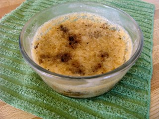 Microwave on high for 3 minutes. Watch it carefully so it doesn’t burn. It will still be pale in color when it’s done. If it browns, you probably burned it. It will look kind of spongy, but be slightly firm to touch.