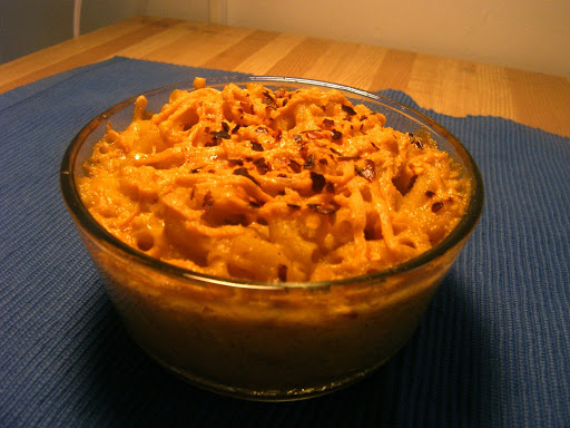 I stated before in my Pad Thai Pizza post that I am not a big fan of most alternative cheeses. Although some claim they “really melt,” they don’t. I choose the word pliable to describe them. They are more pliable when heated but not melty and bubbly.  However, I  heard all these rants and raves about Daiya. So I thought I would give it a try. It tasted pretty good out of the bag. The texture is not quite right, but way better then some other brands I’ve tried. It didn’t totally melt, but it got pretty bubbly and gooey. For something I am not a big fan of, I do like this soy cheese. I used both nutritional yeast and the soy cheese in this recipe.