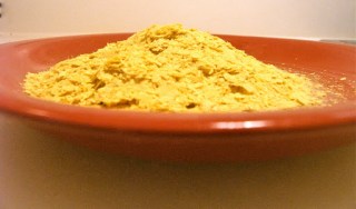 Nutritional yeast is deactivated yeast made from cultured sugarcane or molasses. It’s similar to brewer’s yeast, the left over stuff from making beer, but way less “yeasty” tasting. I had never heard of the stuff until I became a vegan. It has a slight earthy/cheesy/yeasty flavor that can boost up any dish that normally has cheese or meat in it. It’s available at health food stores, usually in bulk but I have seen it in packages too. It is fairly inexpensive, so don’t be a afraid to buy some. It’s good on popcorn or pasta for a “cheesy” topping.