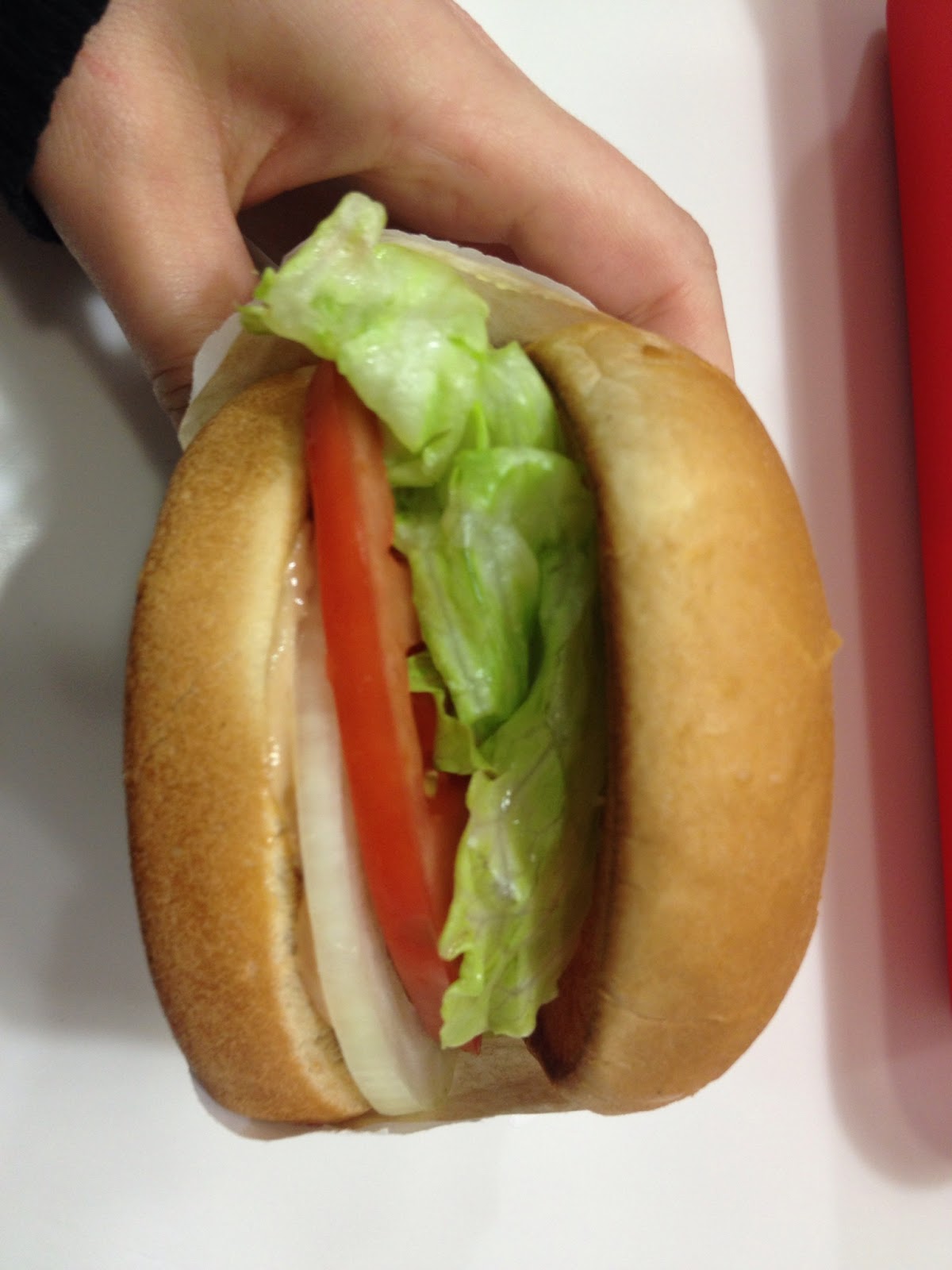 After dancing to Mr. Worldwide for 2 hours, we were starving. And as a Californian now, that usually means In and Out. I normally get a tray of fries and just watch everyone happily eat their burgers. Now, I do not really crave meat ever, but I do love burgers (veggies ones now that is). I had read an article awhile about that In and Out toyed with the idea of doing a veggie patty burger, but, they do not want to deviate too much from the original menu. So, I assumed I would always munch fries in jealousy.