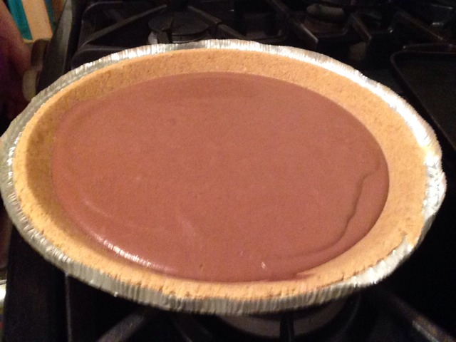 So in honor of my him, I decided to make a healthier vegan version of his favorite dessert.While the pudding mix itself is vegan, it requires milk–and it will not firm up with soymilk. So I had to go a different route. I essentially made my Chocolate Mousse recipe into a pie. Pretty easy, no baking required. And tons of protein and antioxidants.