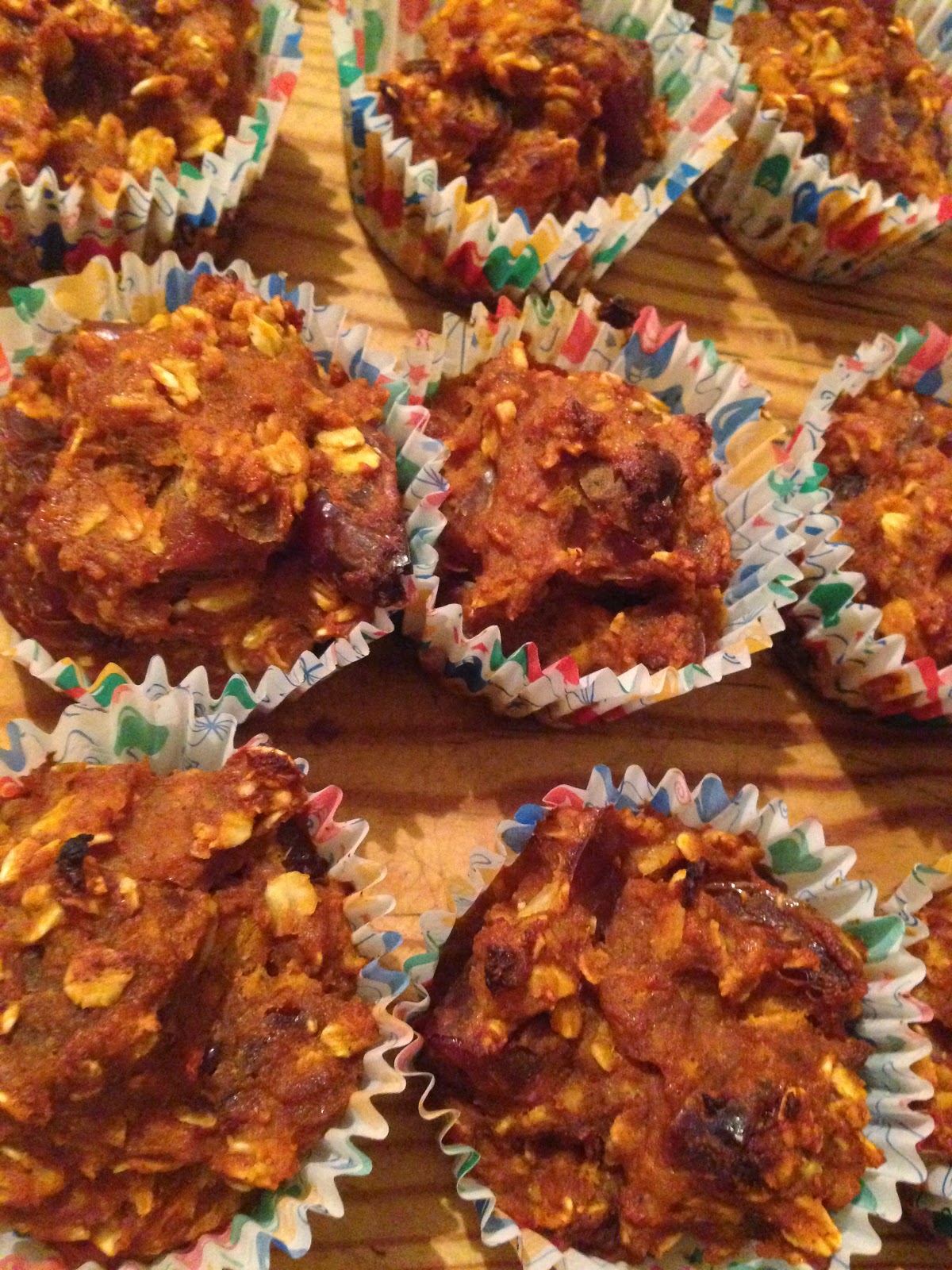 In a large bowl, add the pumpkin puree and dates. Mix well.