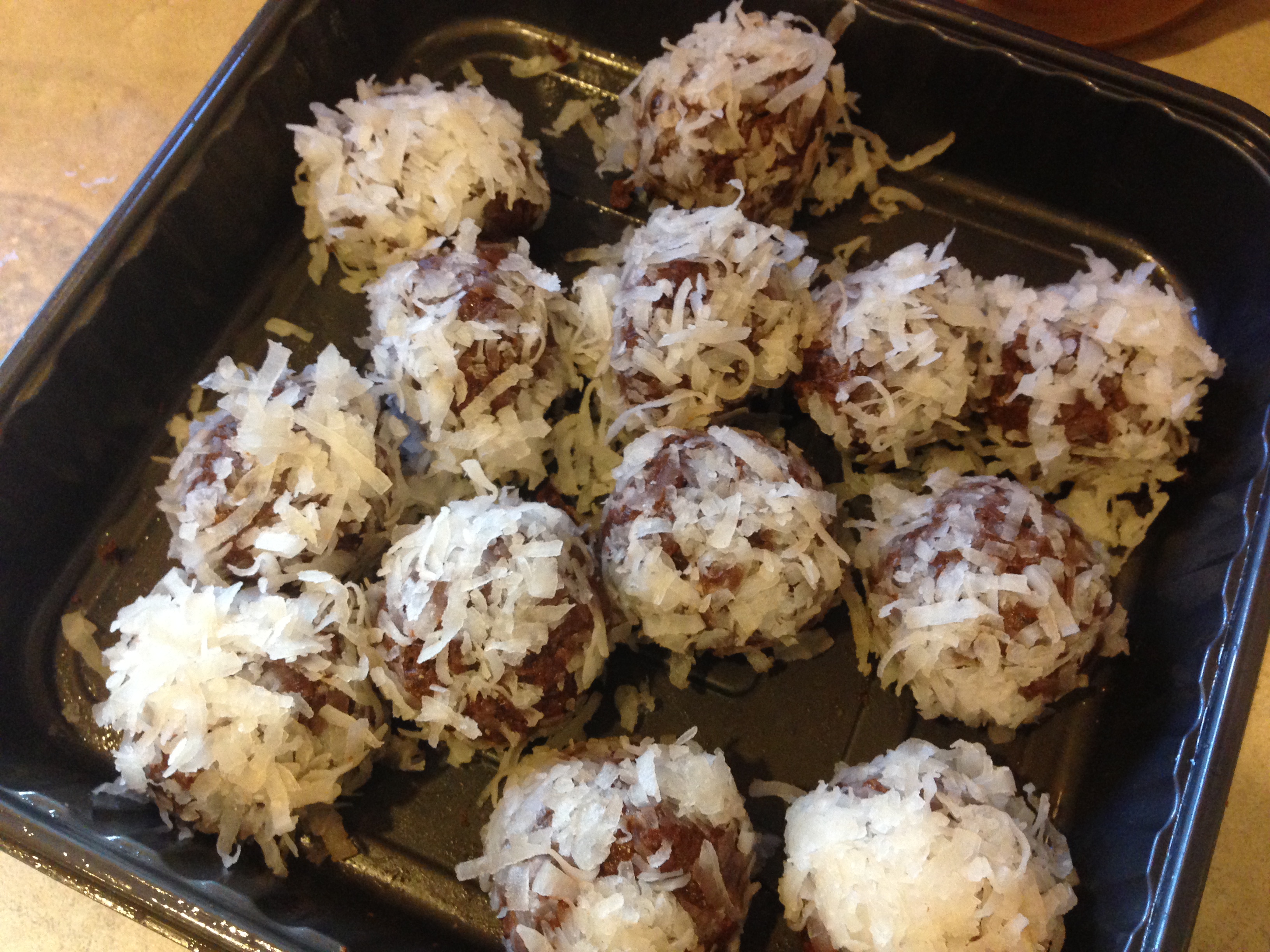 Sprinkle as much shredded as you like onto a plate. Roll the balls in the coconut to coat.