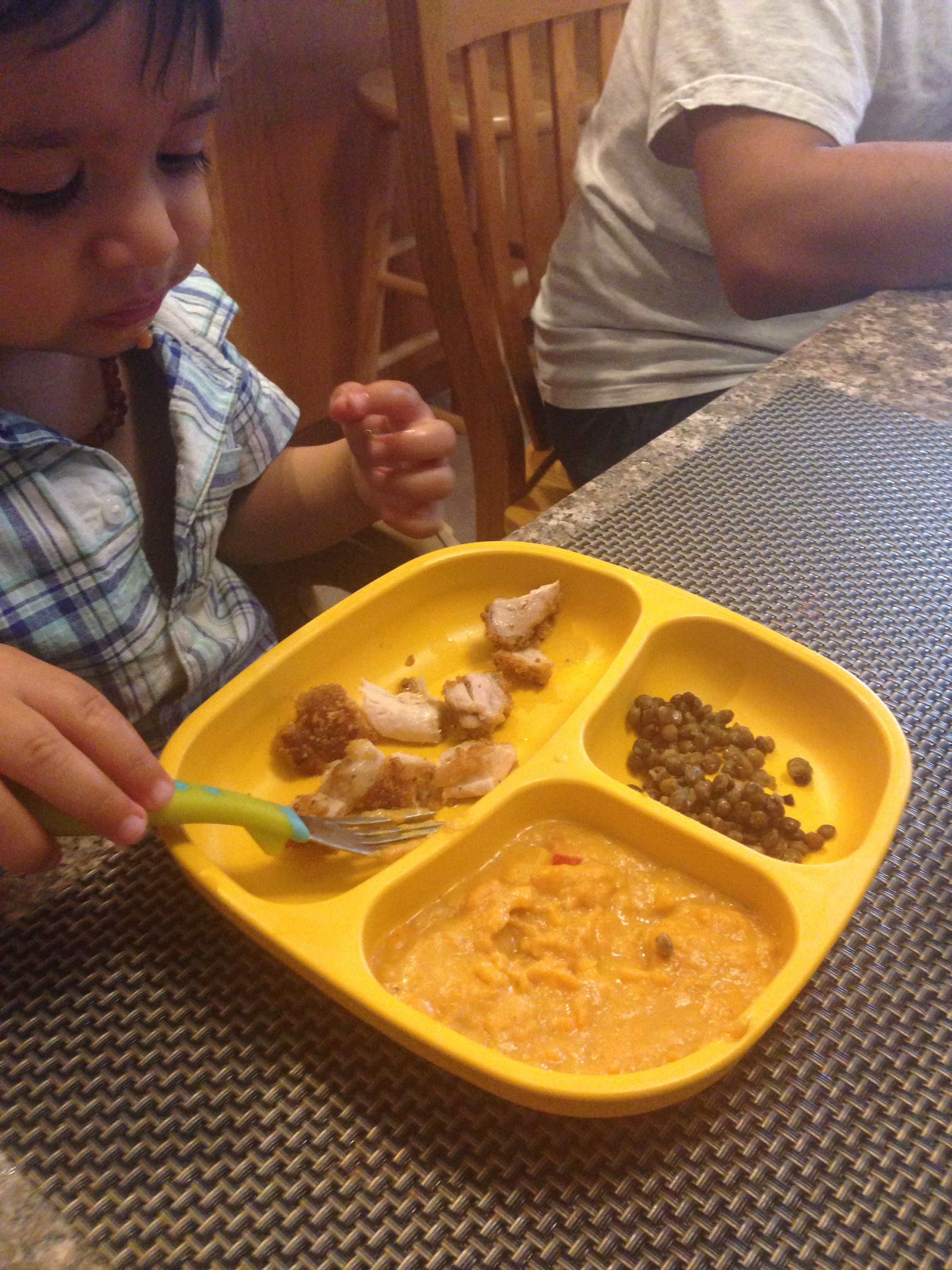 The boys are pan-fried chicken and I had lentils. Jack decided he wanted lentils later too. A lovely warm dish for the fall!