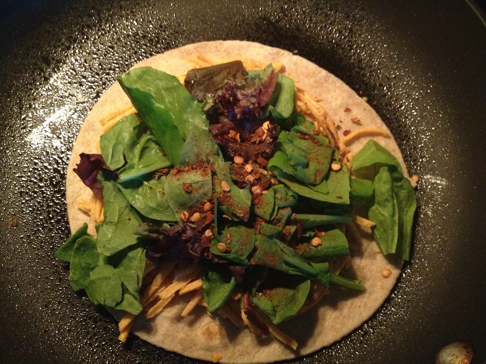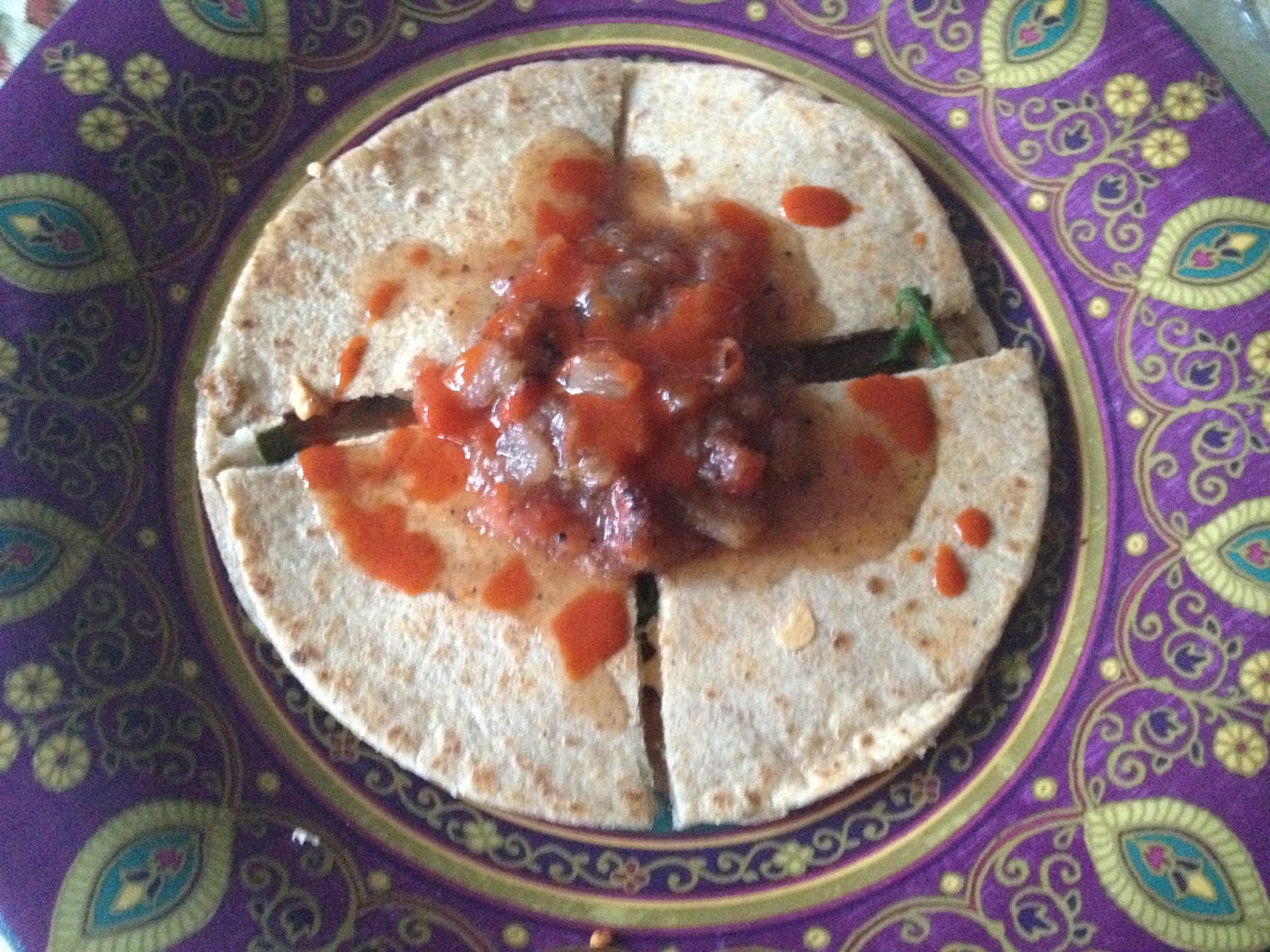 As I was making this, the cooks all looked at me funny and asked what I was making. When I explained it was, they thought I was crazy, “Quesa-dilla, you need queso in order to make it, not frijoles!” So I said, “Fine, it’s a noquesadilla…a beanadilla.”