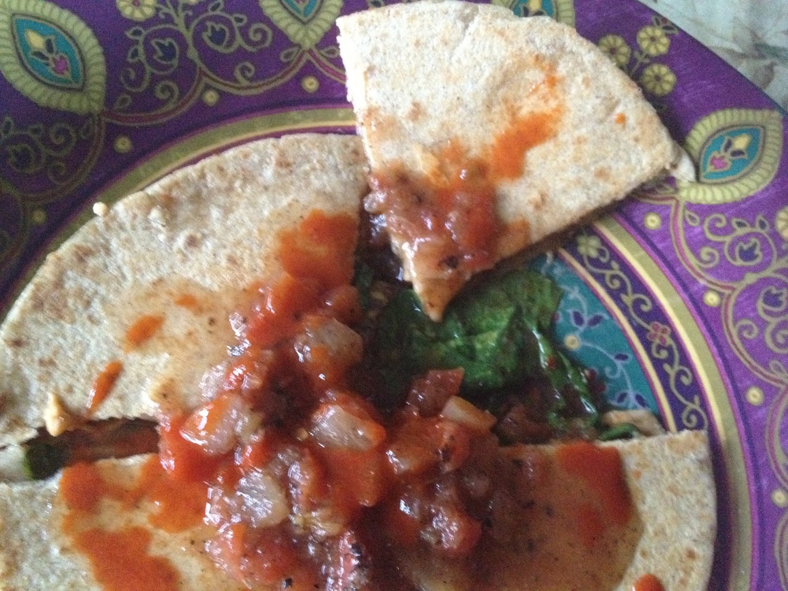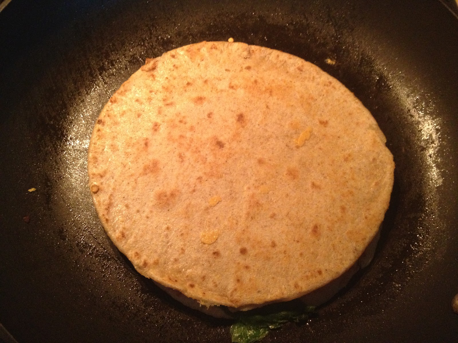 My work has these quesadillas with mushrooms in them, and it sounds amazing. But, queso is not vegan so I can’t have them. Then it dawned on me today that I could make a quesadilla with beans instead, like I often do at home. I originally got the idea from a recipe I saw on VegWeb for one with white beans.