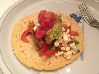 I had the luxury of making this on the flat top grill at work. And I used the homemade slow-cooked pinto beans and the already marinated mushrooms and poblano peppers. But, luckily I have already posted a recipe for how to slow cook pinto beans and it’s not that hard to marinade and sauté veggies at home.