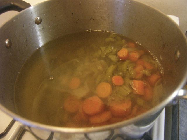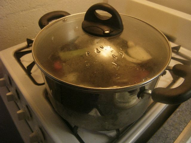 Bring to a boil over medium heat. Once it starts to boil, reduce to simmer and cook 45 mins to 1 hour.