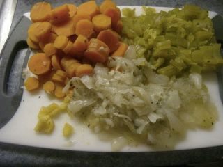 Awhile ago I posted a recipe for homemade seitan where you wash the starch off all purpose flour dough. It makes a very tasty meat substitute, but it is time consuming and annoying to do. There is an easier way to make your own seitan: vital wheat gluten. It is simply gluten flour, flour that already has the starch removed. I have not bought it before because plain flour is usually cheaper. But I found a small box on sale for $2.99 at my local health food store (two hippies got into a fight in the check-out line so I stepped behind to display to get out of their way and noticed the box on the shelf).