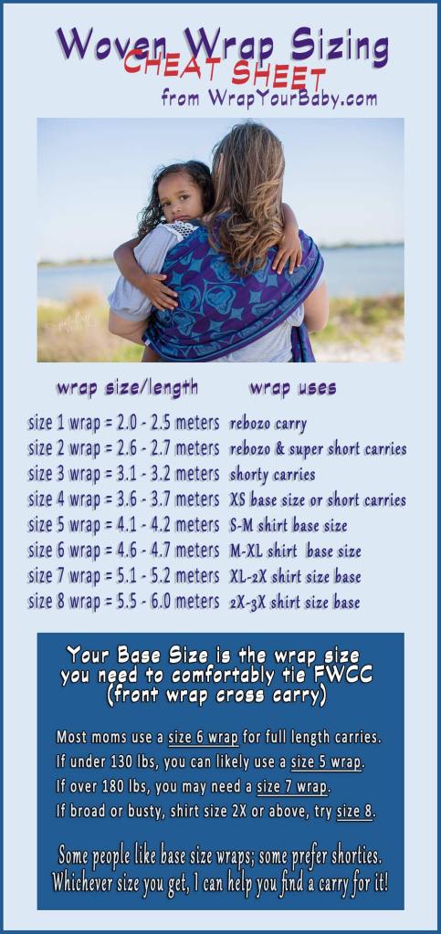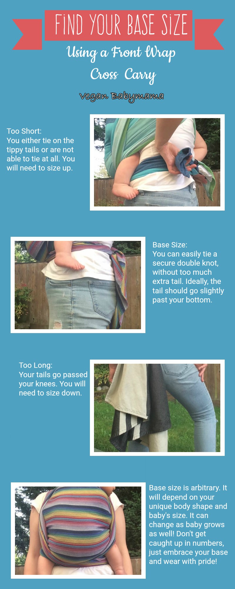 When I started wrapping, I had no idea what base size. I bought my first wrap based on price, and bought a wrap smaller than my base size. I was SO frustrated that I struggled to squeeze out a Front Wrap Cross Carry. Then later a VBE told me about base size and that my wrap was cheaper because it was shorter!
