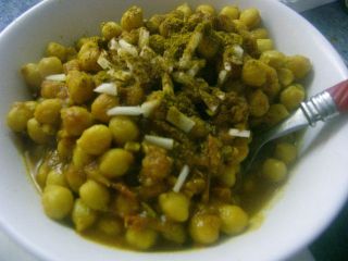 I fell in love with Indian food while I was studying abroad in Australia. There was a little place right on campus that was pretty cheap. It was also conveniently on the walk back from the tram so I would get some when I got off work on occasion. The menu rotated every day but there was the usual selection of curries, chutneys, and such. I have looked-up the recipes for some of my favorites before, but they scared me. Tons of weird spices, ingredients I have never heard, and insanely long cook times. But the other day I wanted something spicy so I decided to search for a simple recipe (there had to be one, India is a very big country, someone has to be lazy like me!) I came across a site called Indian Food Forever and found some really tasty sounding recipes. Then I saw it—a recipe that was easy and I had almost everything it called for already. And It has chickpeas, one my favorite foods.