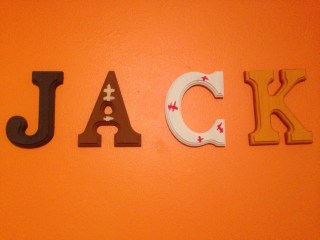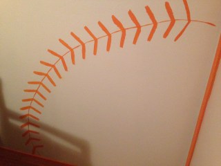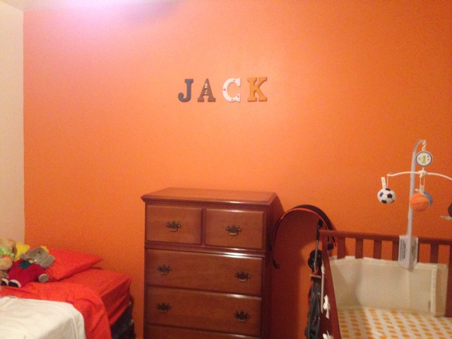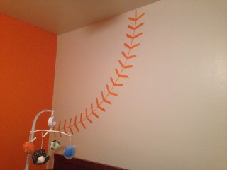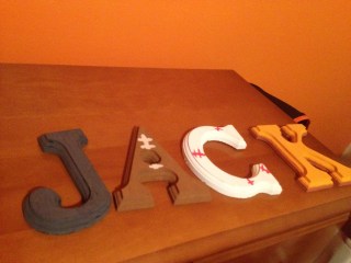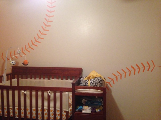 I did make these super cute baseball-themed bean bag toss games. I got the idea from Pinterest. I used a moving box we had laying around and paint left over from Jack’s nursery sign.