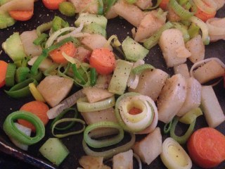 I used VeganEggs and potato starch instead of eggs, and made it a baked dish so I didn’t have to stand around cooking (leaving a naughty toddler unattended doing God knows what).