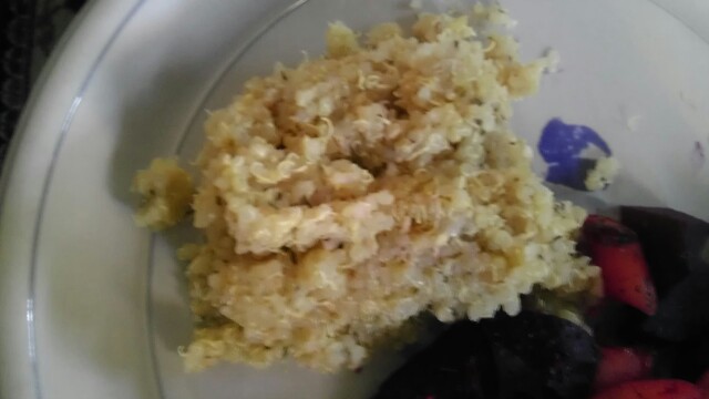 Now I would just eat the salad for dinner, but Michael would not be happy. “I know all you eat is vegetables, but I need more food!” Our lemon tree had a brunch of ripe lemons, so made him lemon chicken. Since I had so many, I thought I would make lemon quinoa as well.