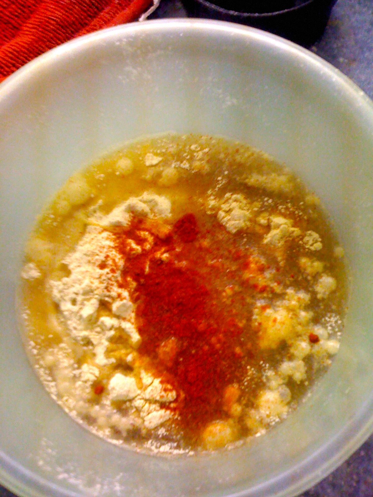 Add the remaining 3/4 cup vegetable broth, 2 tps soy sauce, smoked paprika, chili powder, and garlic powder.