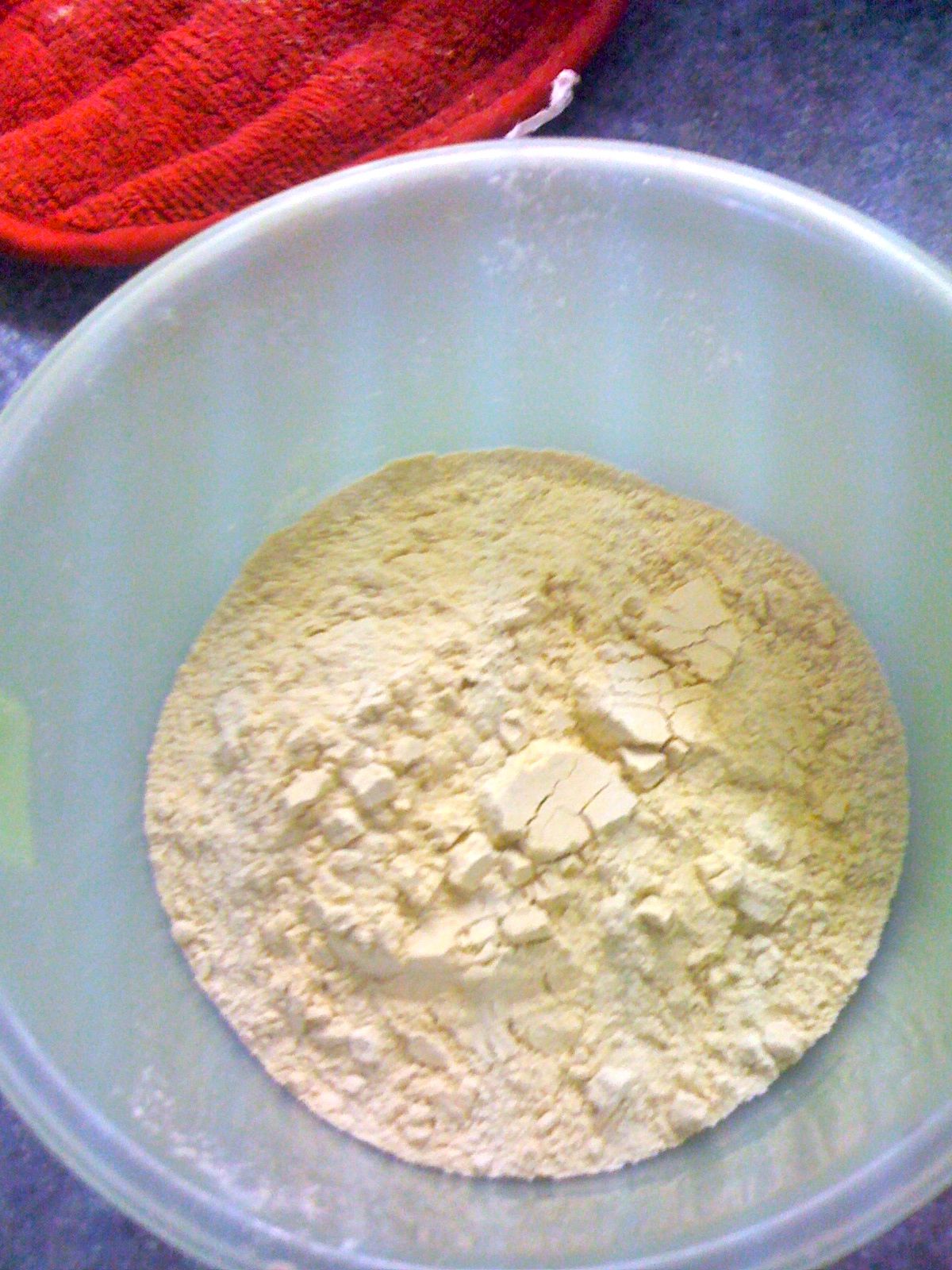 In a small bowl, add vital wheat gluten. Shift through it a bit to get any clumps out.