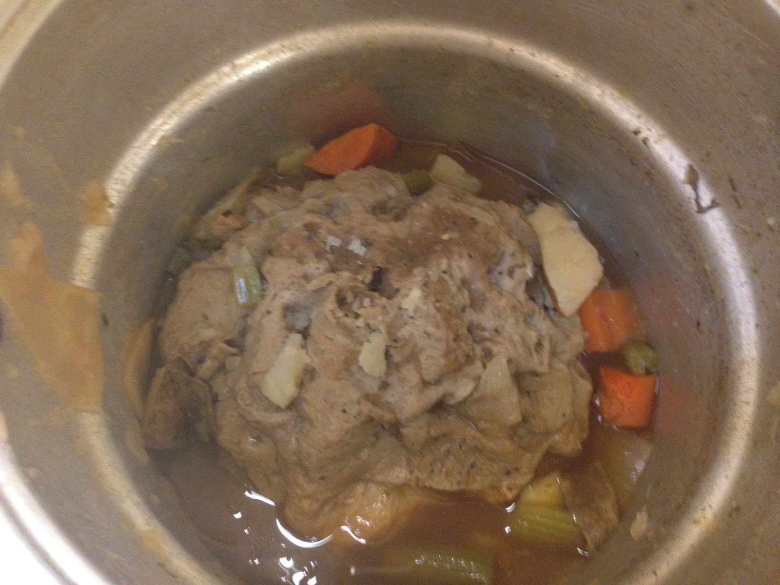 Add combine the remaining ingredients into a large pot. Add the seitan pieces and cover with a lid.